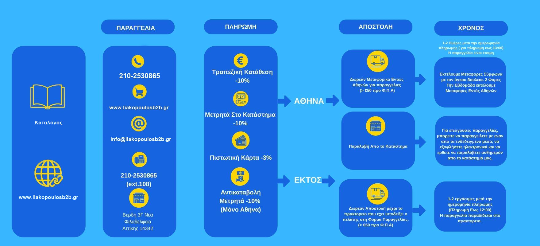 Η Ελένη Λιακοπούλου & ΣΙΑ Ε.Ε. διαθέτει οργανωμένο δίκτυο διανομής, εξασφαλίζοντας γρήγορη και αξιόπιστη παράδοση των παραγγελιών σας, σε όλη την Ελλάδα.